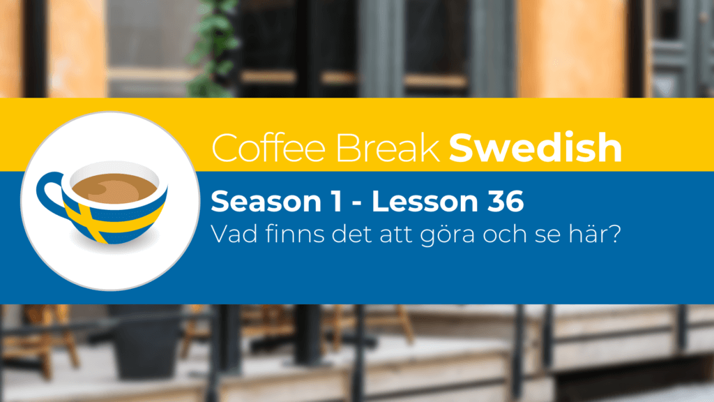 In Lesson 36 of Coffee Break Swedish Mark and his wife continue their travels in Örebro and we join them on a trip to the tourist office where they find out which tourist attractions they can visit. We revisit some vocabulary we haven’t used in a while and take a closer look at some subtleties within the language. Låt oss börja!