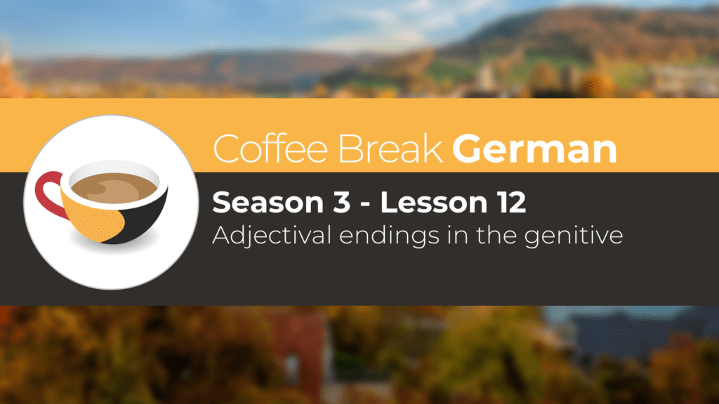 We’re back with another episode of Coffee Break German! This time, Mark and Andrea review adjectival endings before introducing adjectival endings in the genitive. We hear this new grammar point in context during a conversation between Tanja and Katharina who are going clothes shopping.