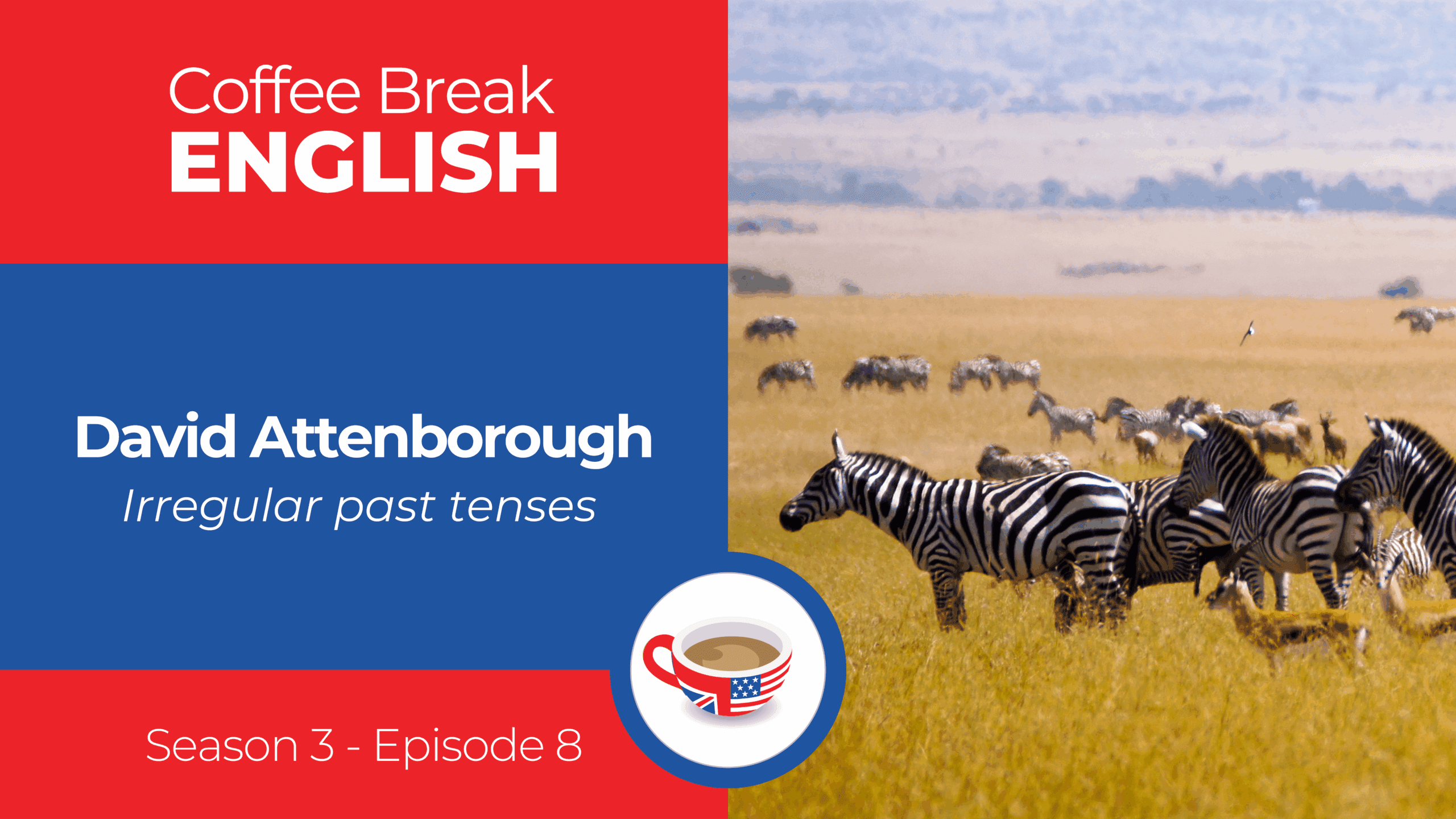 Welcome back to another episode of Coffee Break English! This time, we hear from Susan in England who talks to us about a very famous British person – David Attenborough. Throughout the episode we also focus on irregular past tense verbs.