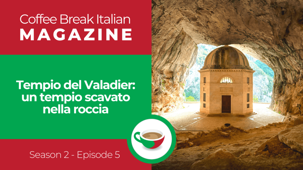 In this episode of the Coffee Break Italian Magazine we’re exploring a very special temple built inside a natural cave in the region of Marche. After hearing a text about this impressive piece or architecture, Mark and Francesca explain a variety of language points including: how to express nuances of colours; the present participle, and passive structures. We also encounter a range of new vocabulary relevant to this topic, such as Medioevo, grotta and roccia. To finish, we share an interesting phrase which can be used to express a state of shock.