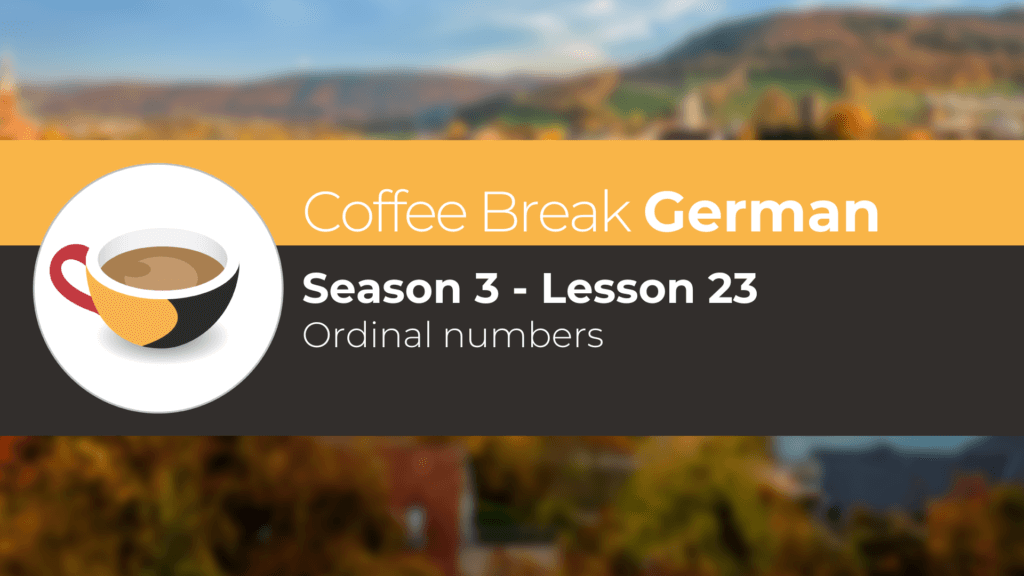 We’re back with another episode of Coffee Break German Season 3 and we are revisiting the topic of ordinal numbers! Although this is a topic you may already be familiar with from the beginning of your learning experience, today we are focusing on something new by looking at capitalisation. We will also look at superlatives that are used in the same way as ordinal numbers. We hear a dialogue between two people discussing a holiday and listen out for the vocabulary unbedingt, Flughafenbus (m) and innerhalb von.